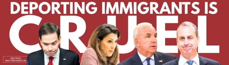 Mensajes como “Deportar inmigrantes es cruel”, “Hagan algo” o “Aspirante a dictador” acompañan los rostros de Donald Trump, del secretario de Estado Marco Rubio y de los congresistas cubanoamericanos Mario Díaz-Balart, María Elvira Salazar y Carlos Giménez.
